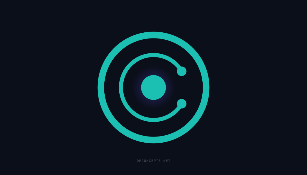The Om Concepts mark is built on golden-ratio geometry and an equilateral-triangle node arrangement. Every variant below preserves those proportions exactly. Use the right lockup for the context. The full system is documented in our brand guidelines.